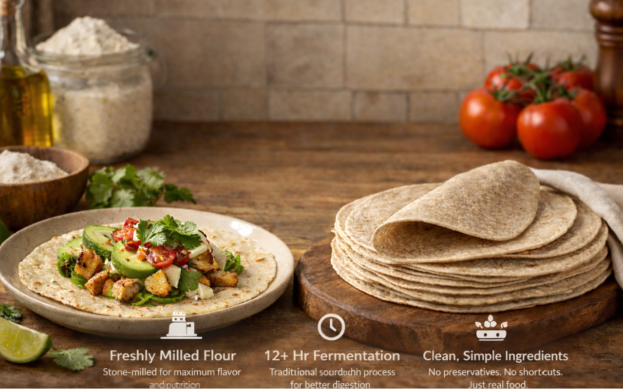 Our tortillas are slow fermented for over 12 hours, allowing wild yeast and natural enzymes to transform simple ingredients into something extraordinary.